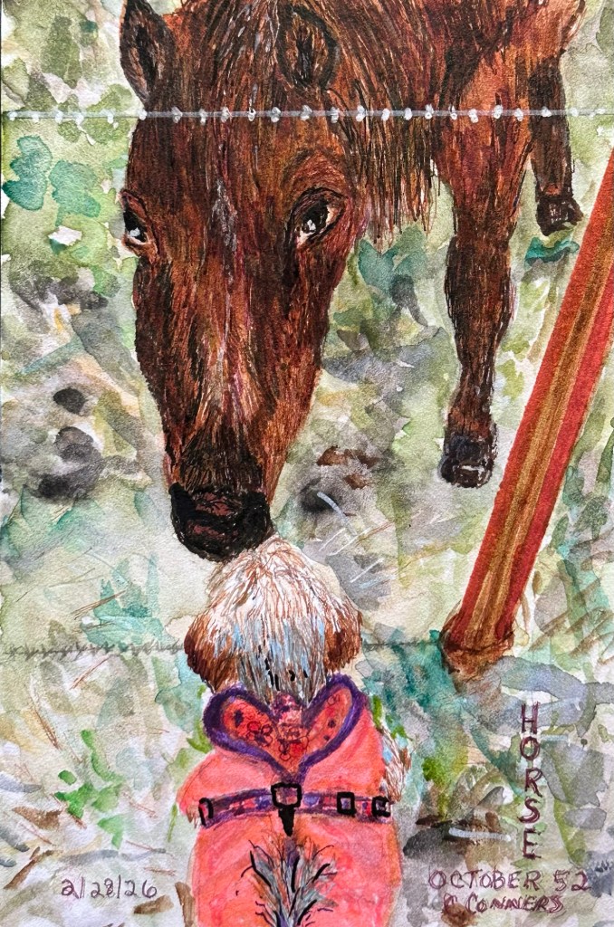 For a couple of months we had horses living across the street. Daphne got to meet a horse. They became friends.