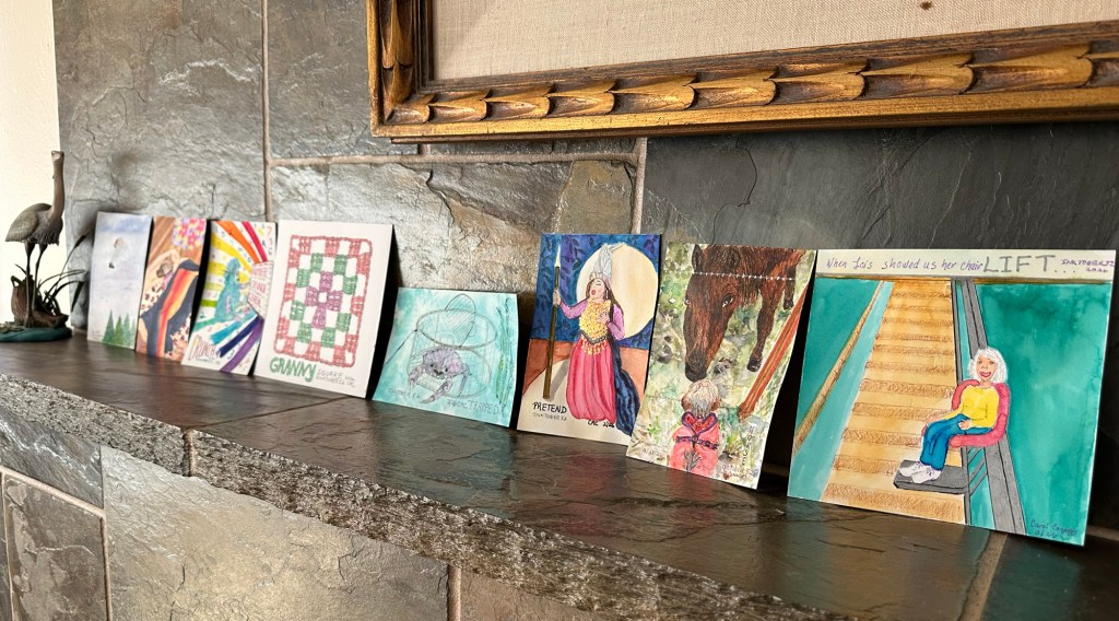 Some of my white gel pens had dried out, so I went to Micheal’s to freshen up my pen supplies. This is Daphne our Yorkshire Terrier. She is snug and cozy in her bed wrapped in blankets.