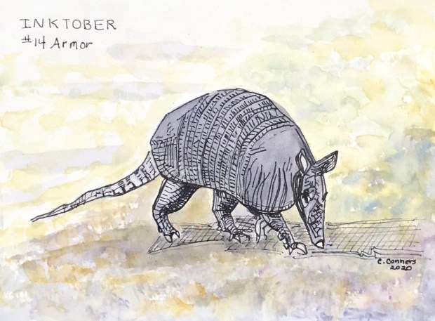 #14 Armor Alvin TechLiner and watercolor paint on Arnheim cotton paper Share this: Click to share on X (Opens in new window) X Click to share on Facebook (Opens in new window) Facebook Like Loading...