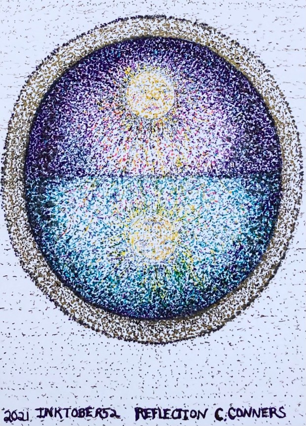 Emott Ever Fine Pens, Pilot Razor Point Green, Copic Multiliner Cobalt Blue, Faber-Castell Pitt Pens in Gold and Dark Sepia, Fudenosuke Purple Pen, and Kuretake Zig Calligraphy Sepia Pen on Arnheim 100% Cotton Paper