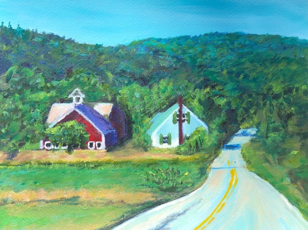 I painted most of this painting a few weeks ago during Friday Night Live with Acrylic University host and artist, Jed Forsey who was joined by artist, Farley Lewis. Farley had take the photo for the painting during a trip to Vermont. It was a lot of fun to paint along.