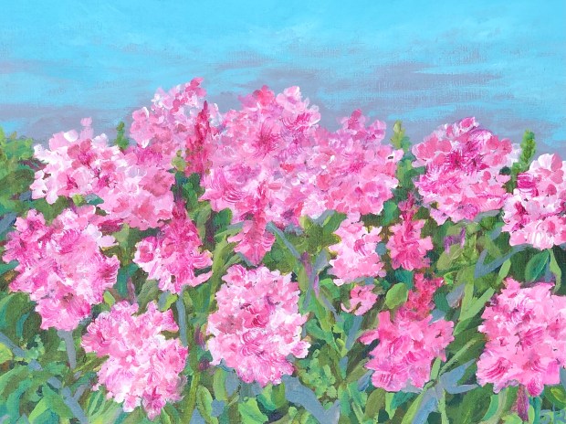 Pink Rhododendron 9″ x 12″ Acrylic paint on linen panel Our pink rhododendron is in full bloom. Share this: Click to share on X (Opens in new window) X Click to share on Facebook (Opens in new window) Facebook Like Loading...