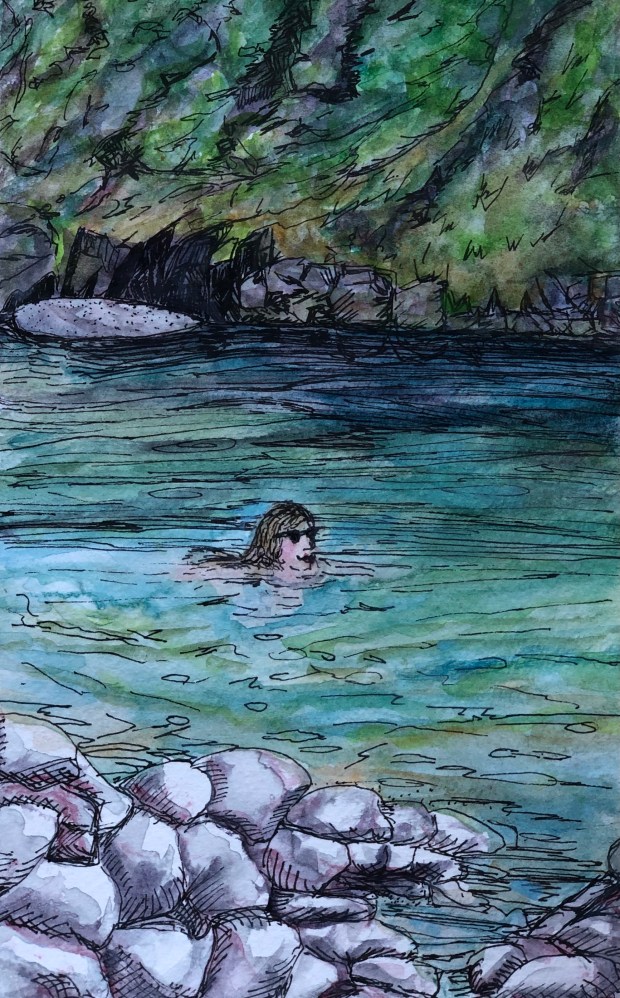 Swimming Pool #22 Inktober52 Kuretake ink and watercolor paint My favorite swimming pool is upriver from home. Share this: Click to share on X (Opens in new window) X Click to share on Facebook (Opens in new window) Facebook Like Loading...