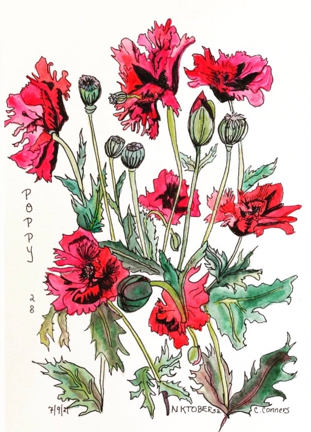 Poppy 7″ x 10″ Ink, Watercolor and Gouache Lanaquarelle Inktober52 Prompt 28 Share this: Click to share on X (Opens in new window) X Click to share on Facebook (Opens in new window) Facebook Like Loading...