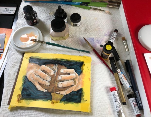 Ink and watercolor