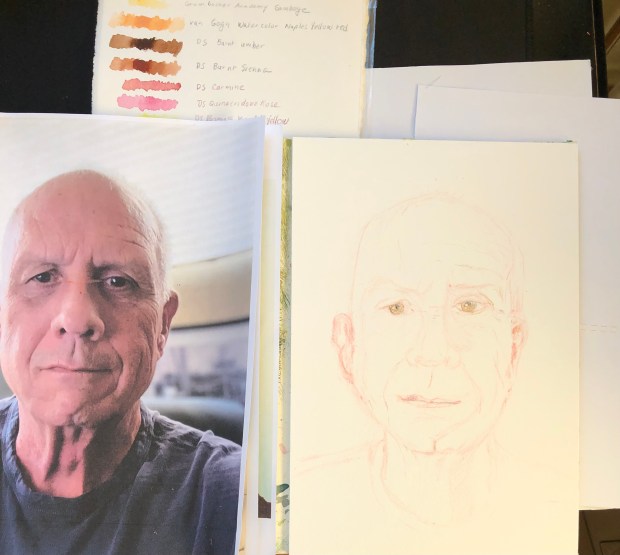 This is a portrait of my husband Greg. I used the materials with the exception of the paper in the Sketchbox Watercolor Portaiture Special Edition Box and watched a lesson with portraiture artist Joanna Barnum of Maryland.