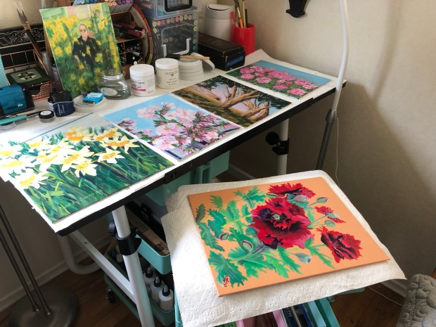 I applied a matte varnish to the following acrylic paintings.