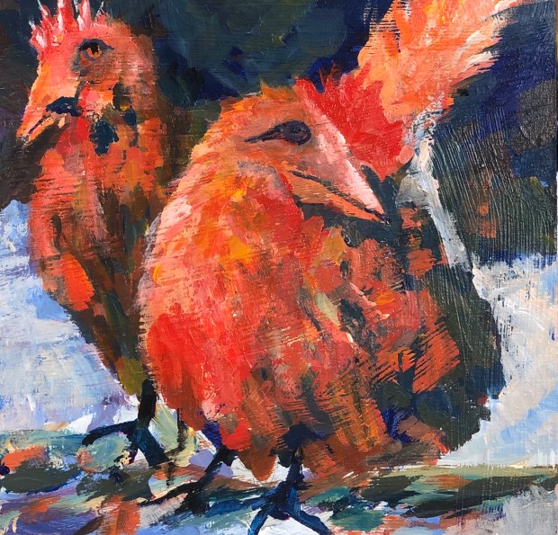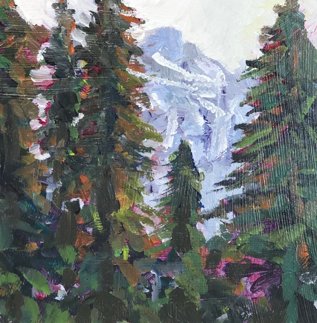 This was painted on a wooden board. I prepped a bunch of 6″ x 6″ boards with Golden GAC 100. The next day I painted some of the boards with black gesso, some with gray gesso, and some with white gesso.