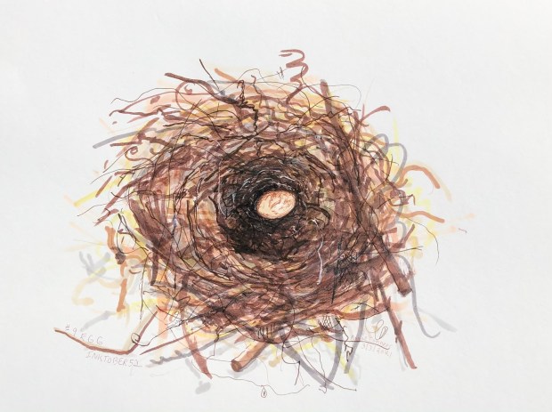 It took me some time to figure out how to proceed with this Inktober52 prompt. A couple of days ago, I brought along a pad of marker paper, a drawing pencil and an eraser to keep me occupied in the car, while Greg had an appointment. It was a cold morning, and the landscaping was a lovely distraction.