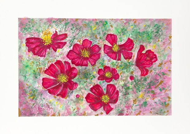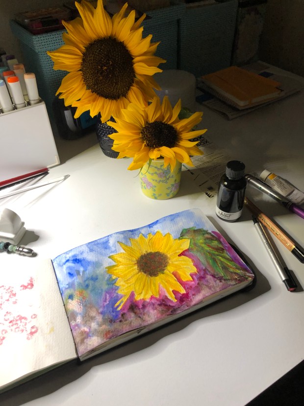 Mix-media: acrylic paint, watercolor paint, black and white ink