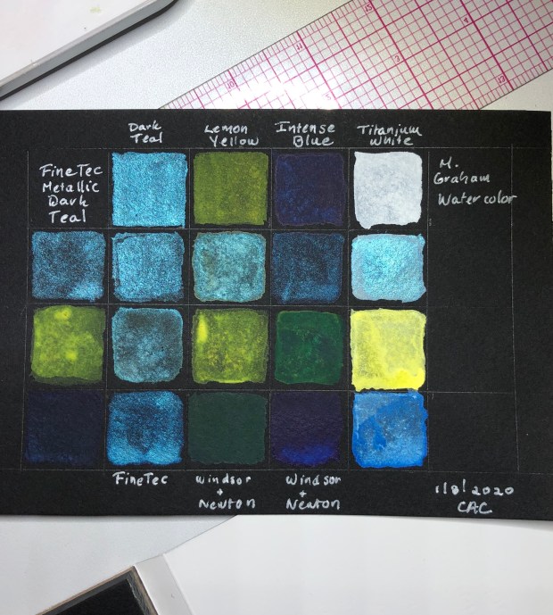 These Daniel Smith Duochrome watercolor paint colors show-off on this Legion Stonehenge Aqua Black Watercolor Paper. I love the effects.